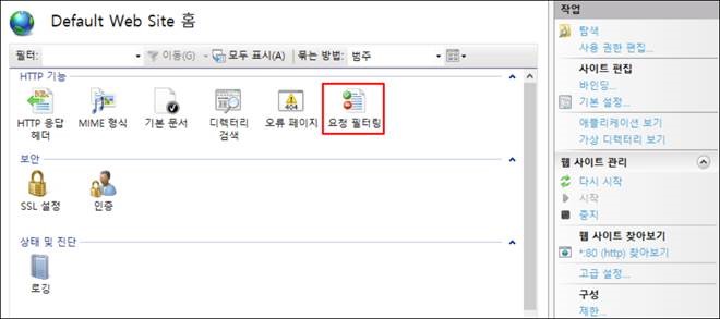 실행 - inetmgr - 요청 필터링 클릭