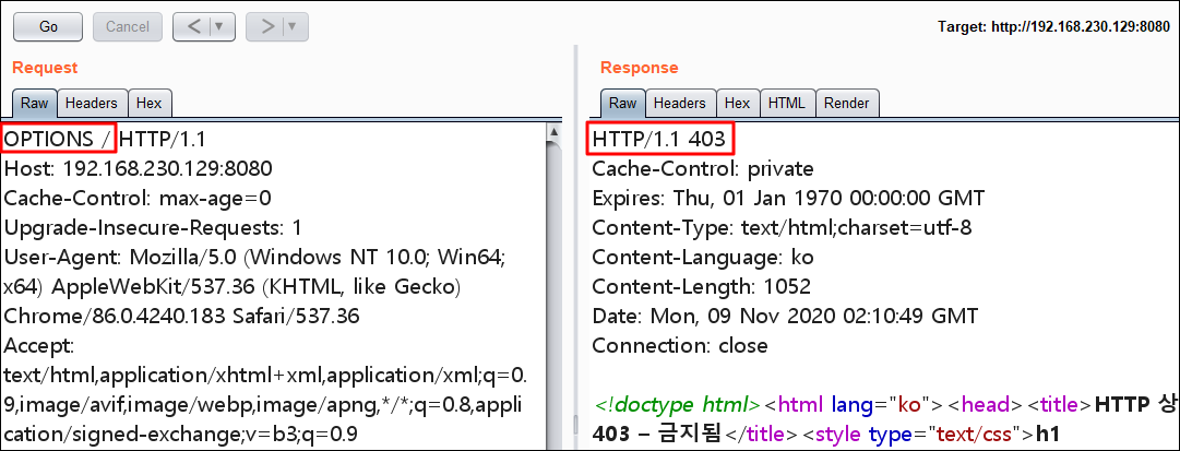 테스트 해보니 톰캣은 403 에러페이지 설정해도 응답코드는 403으로 뜬다ㅋ