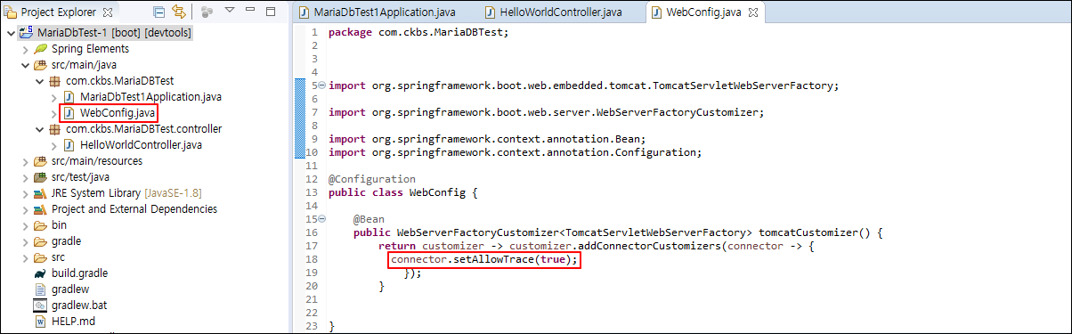 return customizer -> customizer.addConnectorCustomizers(connector -> {connector.setAllowTrace(true);});