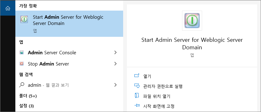 설치 다 되면 아래처럼 Start Admin Server for Weblogic Server Domain 실행시켜도 되고