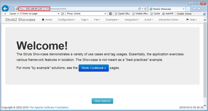 piesecurity/apache-struts2-cve-2017-5638 /bin/bash : 사용할 이미지명과 /bin/bash 는 컨테이너에서 사용할 쉘