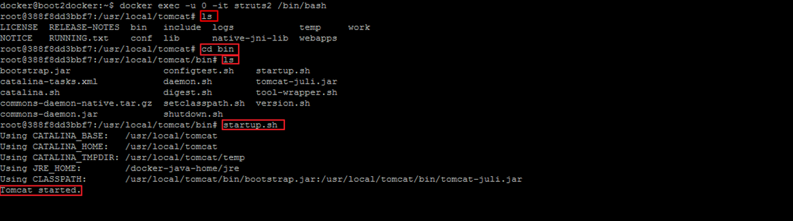 ↑ 컨테이너 들어가서 Tomcat 실행시키는 과정
