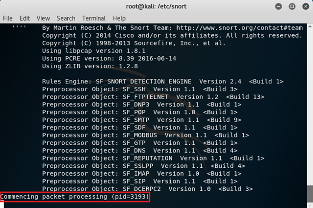 /etc/snort 위치에서 snort -c snort.conf 하면 실행된다