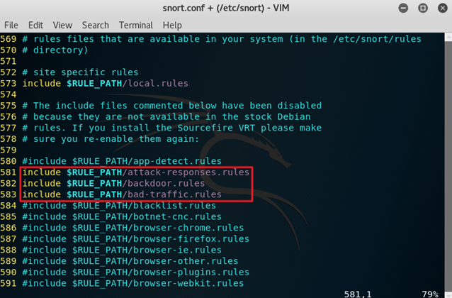 vim /etc/snort/local.rules 에 룰셋 작성한다