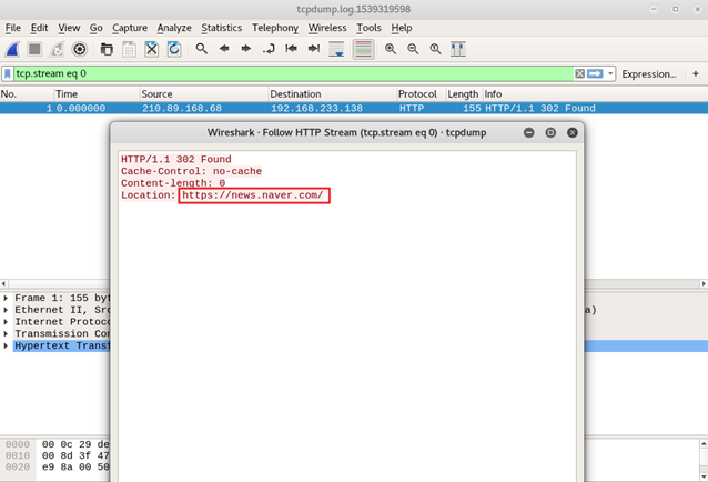 https 는 탐지 불가하므로 http 통신 구간으로 클릭