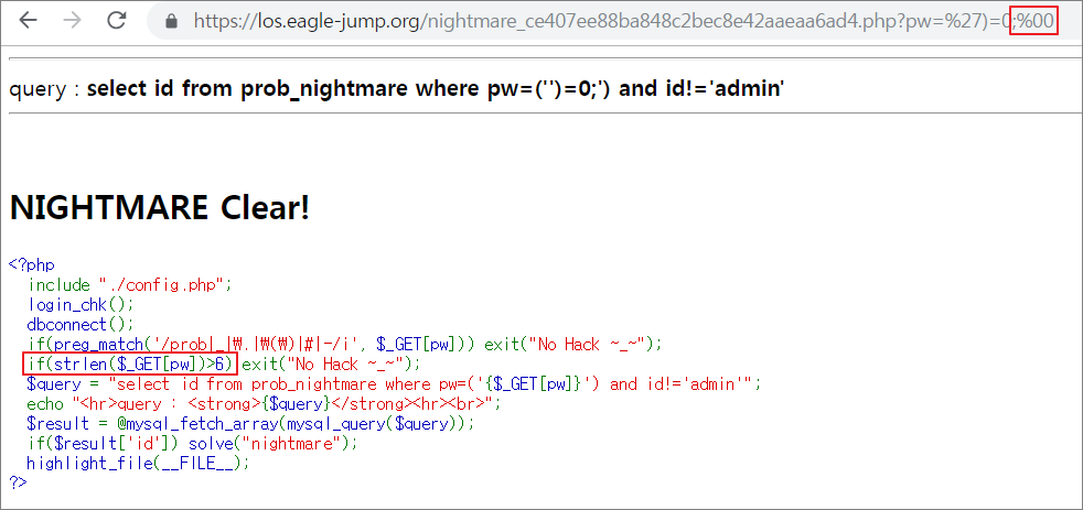 strlen($_GET[pw])>6 이라고 되어있어서 pw 에 6자리까지 밖에 입력 못한다
