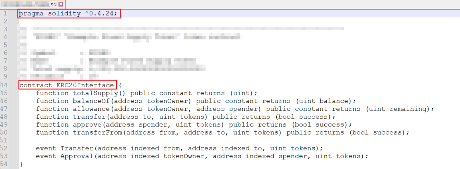 solidity 버전이랑 ERC-20 인터페이스 선언되어 있다