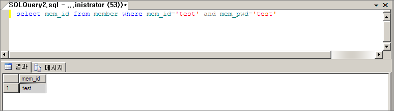 쿼리를 참으로 만들어 주면 아래와 같이 최소 한줄 이상은 뜨지