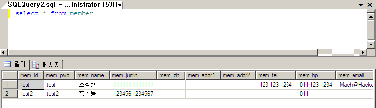 $result 는 test, test, 조성현, 111111-1111111 ..... 이 되는건가?
