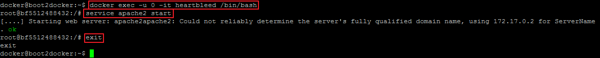 $ docker exec -u 0 -it heartbleed /bin/bash : 컨테이너 들어가기