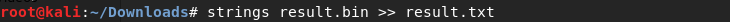strings result.bin >> result.txt : result.bin 파일 result.txt 로 만든다