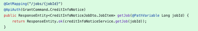 - @ApiAuth 붙었으니까 /jobs/{jobId} 실행 하기전에 먼저 AOP 가 체크할거임