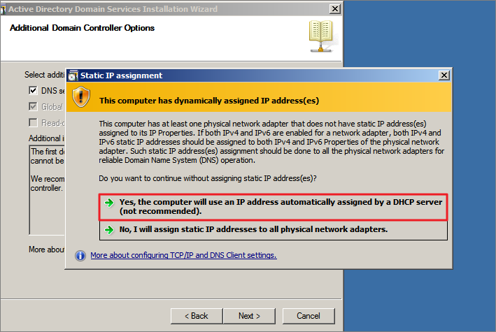 아래 창 뜨는것은 현재 동적IP 사용하고 있기 때문 > 그냥 Yes 클릭