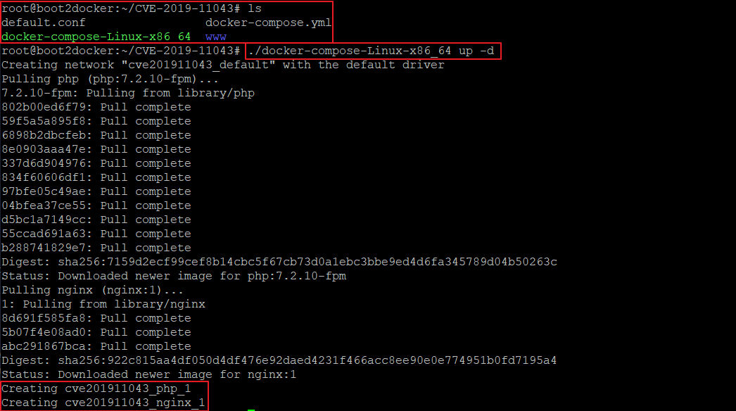 3) /CVE-2019-11043 폴더에 docker-compose 명령어 넣고 실행