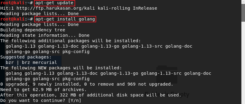 4) Kali 에서 apt-get update 하고 golang 패키지 설치