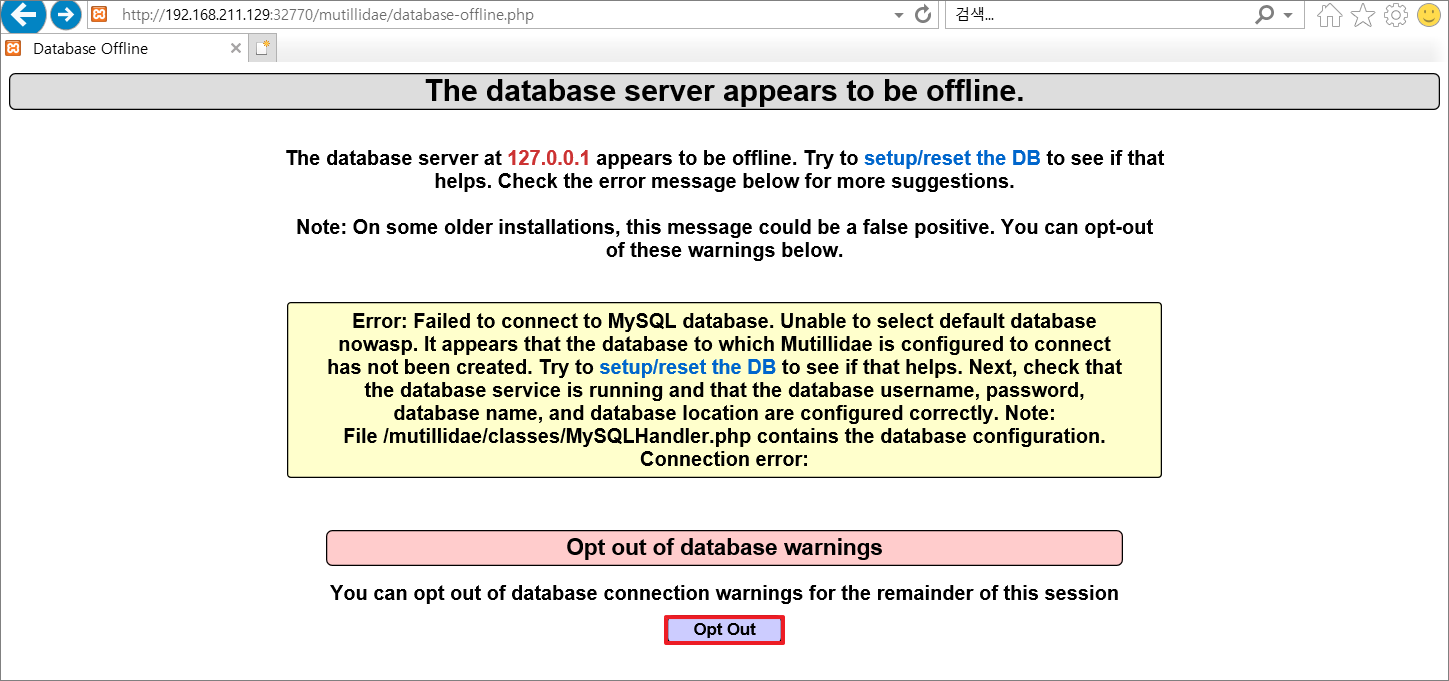 http://도커IP:포트(32770→80)/mutillidae